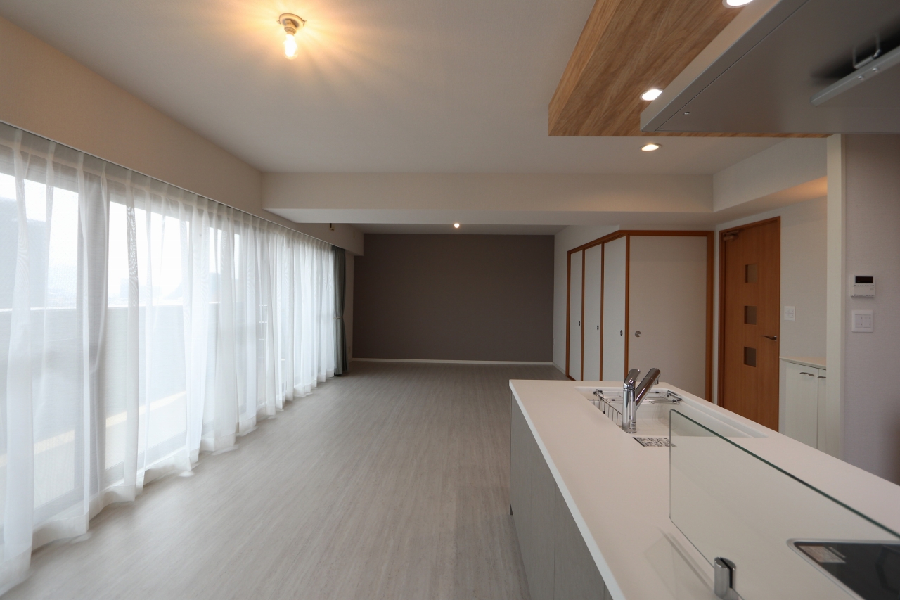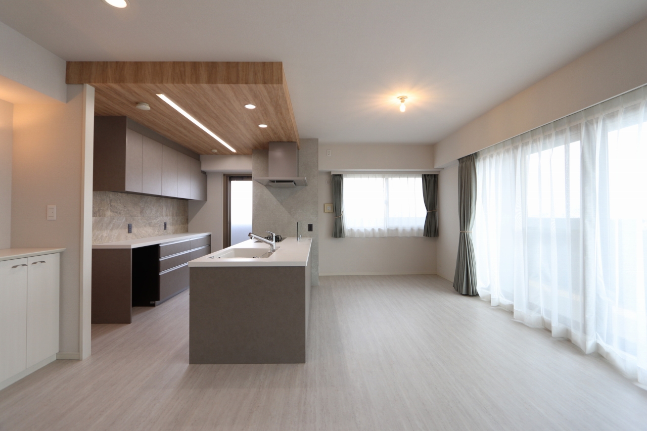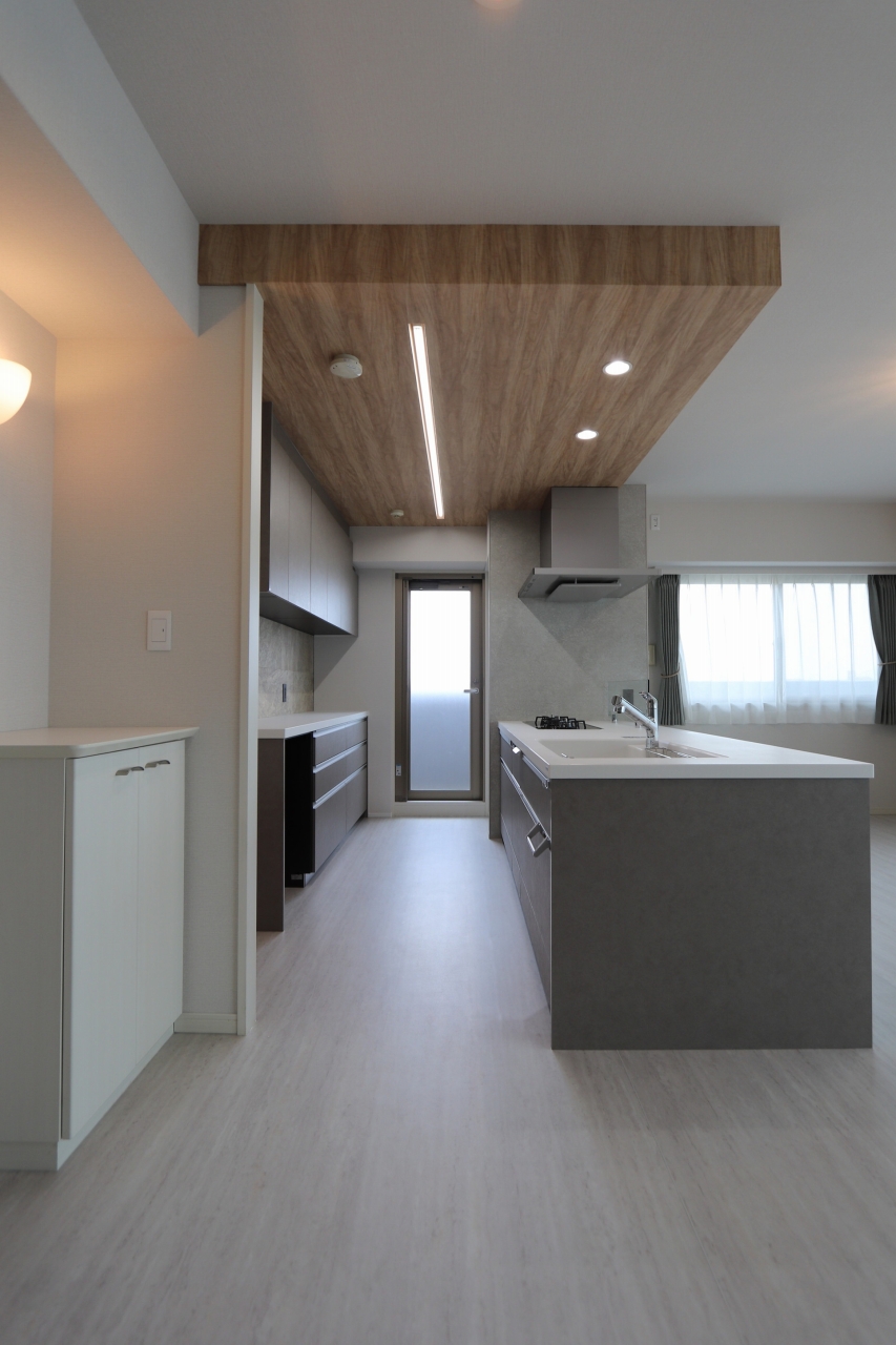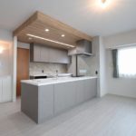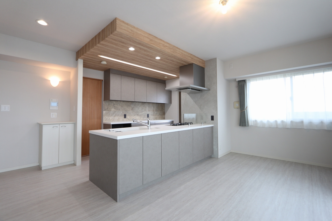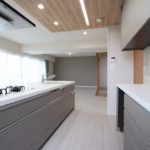 グレーを基調とした落ち着いたカラーリングのキッチン